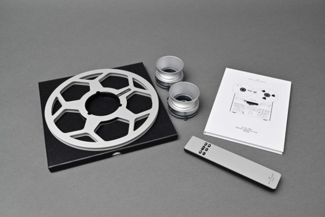 The state-of-the-art audio electronics is based on the amplifier technology of the new M 051 master recorder and has electronically balanced in- and outputs. It consists of a plug-in board system with separate boards for both channels with very short signal paths. Playback and recording electronics as well as the erase oscillator are powered by separate precision power supplies. As is usual with studio equipment, the playback level, treble and bass can be calibrated separately for each speed via low-distortion conductive plastik trimmers. The same applies to the recording section: Here, too, the recording level and frequency response can be adjust separately. For all three speeds, 19 cm/s and 38 cm/s and 76 cm/s, CCIR and NAB equalizations are available on the playback section, which can be switched on the control panel and are shown on the display. The use of toroidal transformers, their position and the spatial separation of audio and power electronics ensure a high signal-to-noise ratio. In order to keep the signal paths short and to reduce interference from tape transport to a minimum, the amplifier electronics were built as far as possible using SMD (surface mounted device) technology. The switching of the equalizations takes place almost without cracking via modern semiconductor relays.