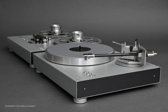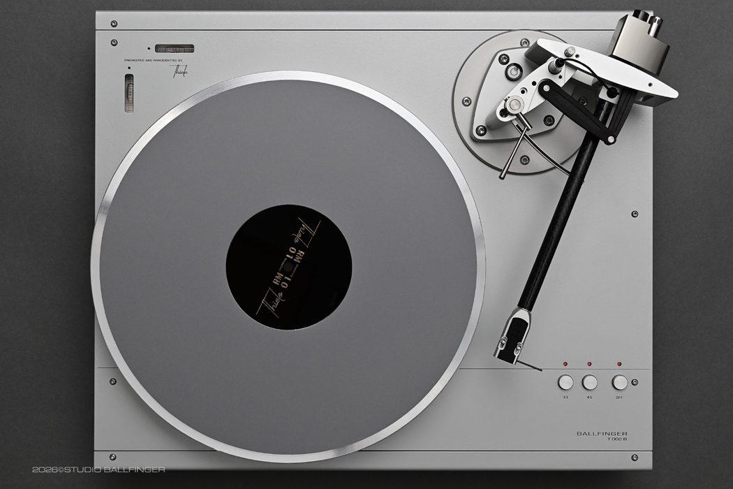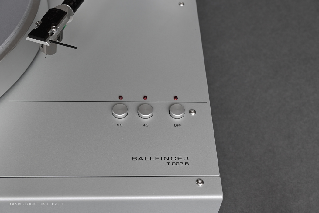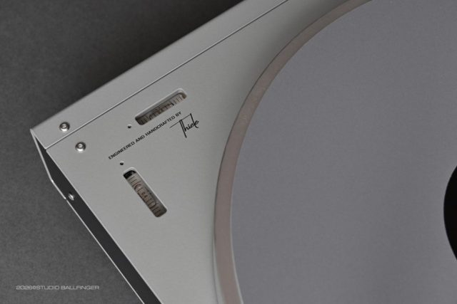 The T 002 P is a compact high end turntable in a class of its own: its iconic design, ease of use, and above all its tonal quality make this turntable an outstanding product in today’s highly competitive market for audiophile turntables. The radically minimalistic design, including the layout of the controls, was carried over directly from the M 002 P tape deck. The technical developer was Helmut Thiele, who has been designing audiphile turntables for a variety of manufacturers for nearly five decades and most recently contributed his expertise to the Thorens New Reference. We offer this outstanding turntable with two tonearms: either the T 002 B with the uncompromising Thiele TA01 Zero Tracking Tonearm, or, for lovers of the classic radial tonearm, the Zavfino Crossbow TZ-1 9″. As with our tape machines, the T 002 B is avalilable in two color combinations: matte silver with gray side panels and matte black with black side panels.